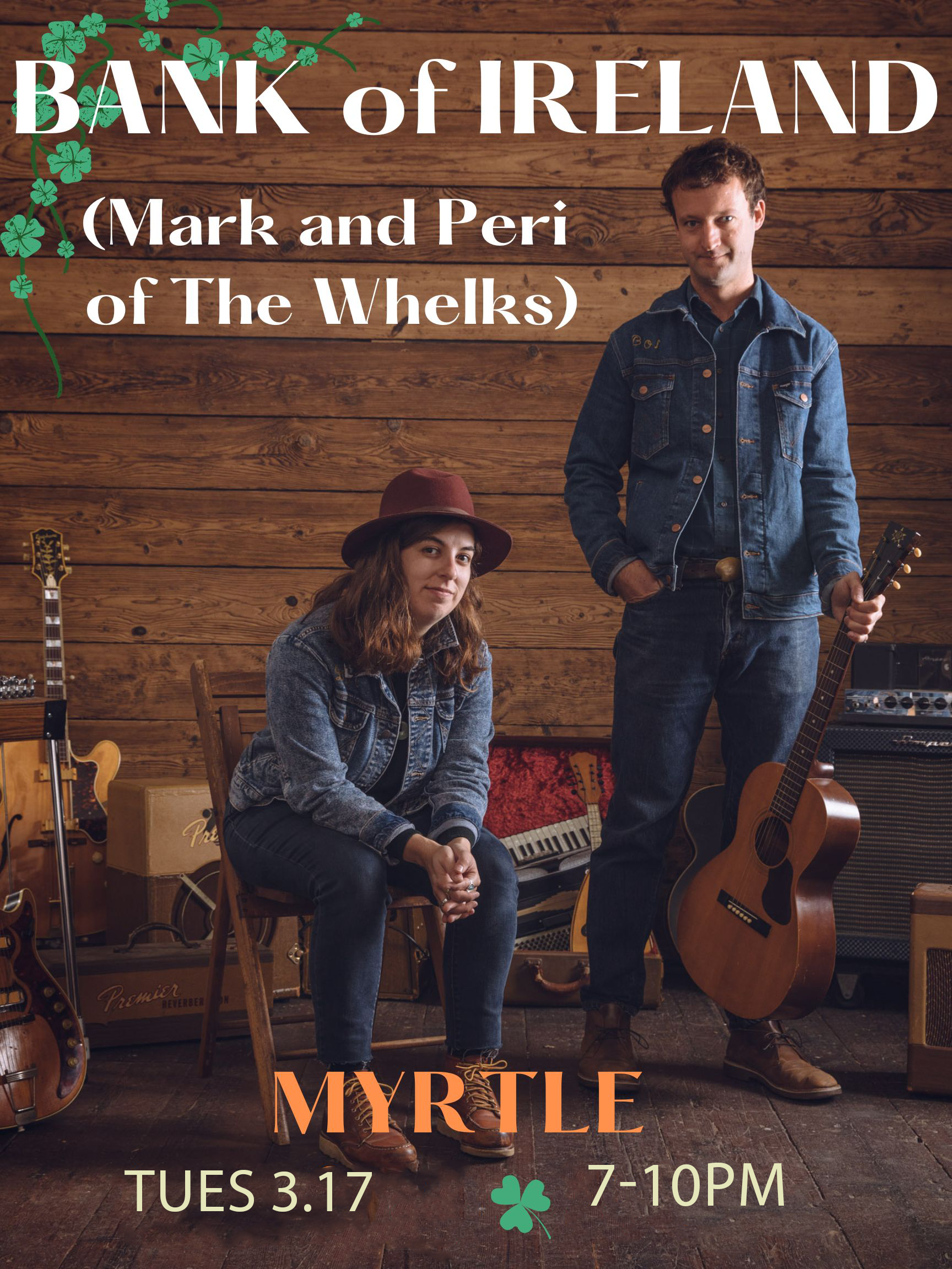 Bank of Ireland is a once a year celebration of the depth and breadth of Irish song, story, and musicianship. Featuring Mark Dobbyn and Peri DeLorenzo (The Whelks) alongside David Christian (Mary Timony, Hospitality) and Lee Godleski (Los Neon Moons, Pale Mara) they take some of the oldest songs in the english language and explore them with an eye towards improvisation. A mix of fiddle tunes, rebel songs, love songs, and murder ballads. Of talking racehorses, jilted lovers, rakes, rovers, and IRA men. No leprechauns or 'kiss me, I'm Irish' nonsense here, this is the real business. Pairs well with pints of stout, straight whiskey, and stalwart friends. May result in feelings of anti-colonialism. Supplies are limited to one weekend a year. Act accordingly. Sláinte.