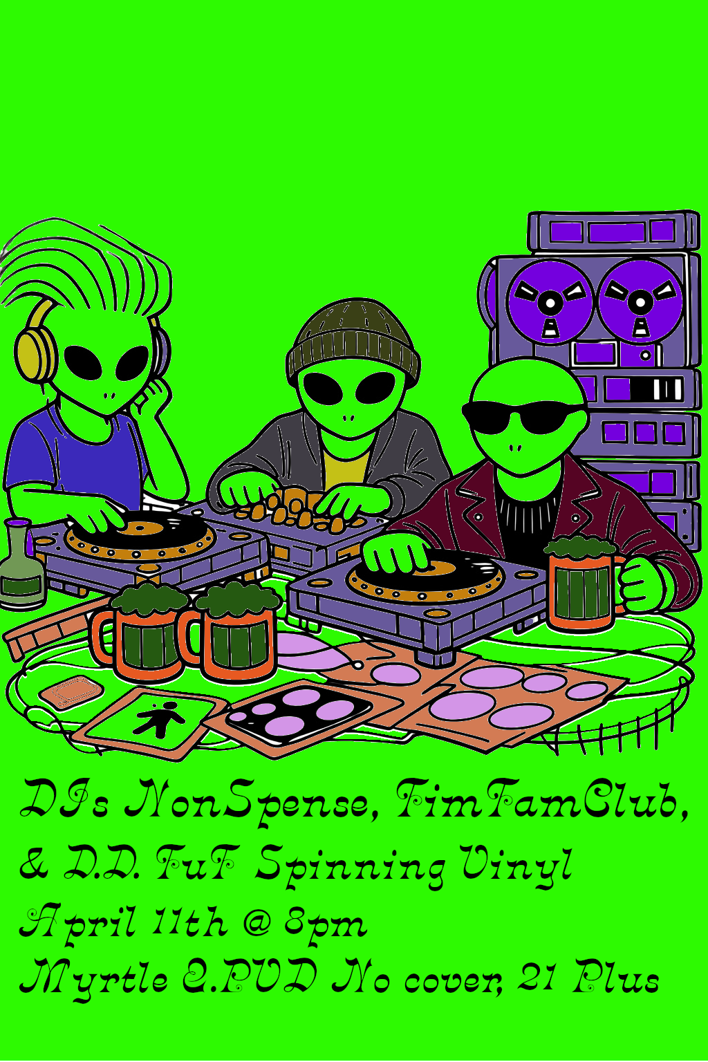 DJ's NONSPENSE, TIMTAMCLUB & DD TUT spinning Vinyl! Saturday, April 11, 2026 8:00 PM 11:00 PM Myrtle 134 Waterman Avenue East Providence, RI, 02914 United States (map) Google Calendar ICS