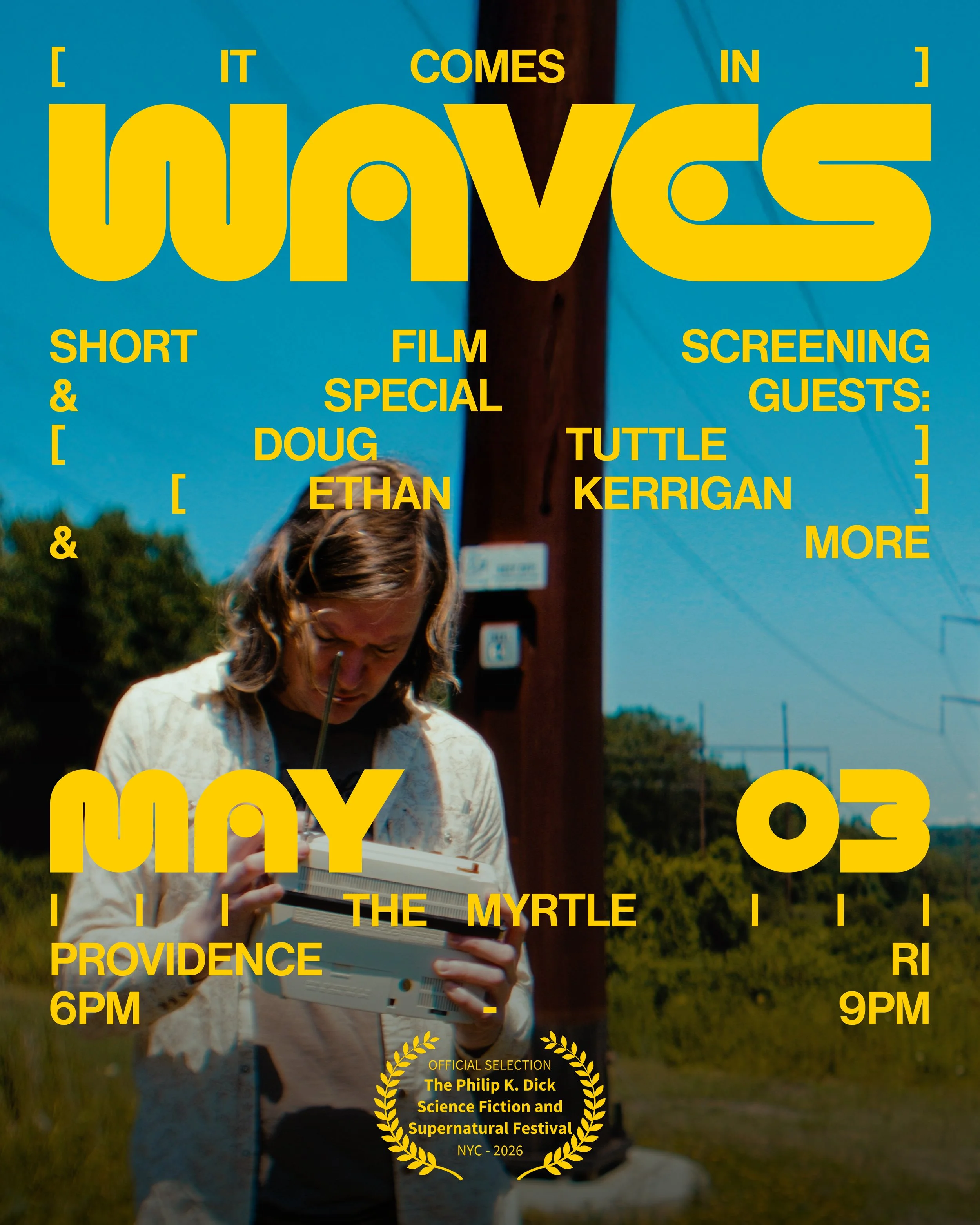IT COMES IN WAVES film screening w/ Doug Tuttle & Ethan Kerrigan Sunday, May 3, 2026 6:00 PM 9:00 PM Myrtle 134 Waterman Avenue East Providence, RI, 02914 United States (map) Google Calendar ICS