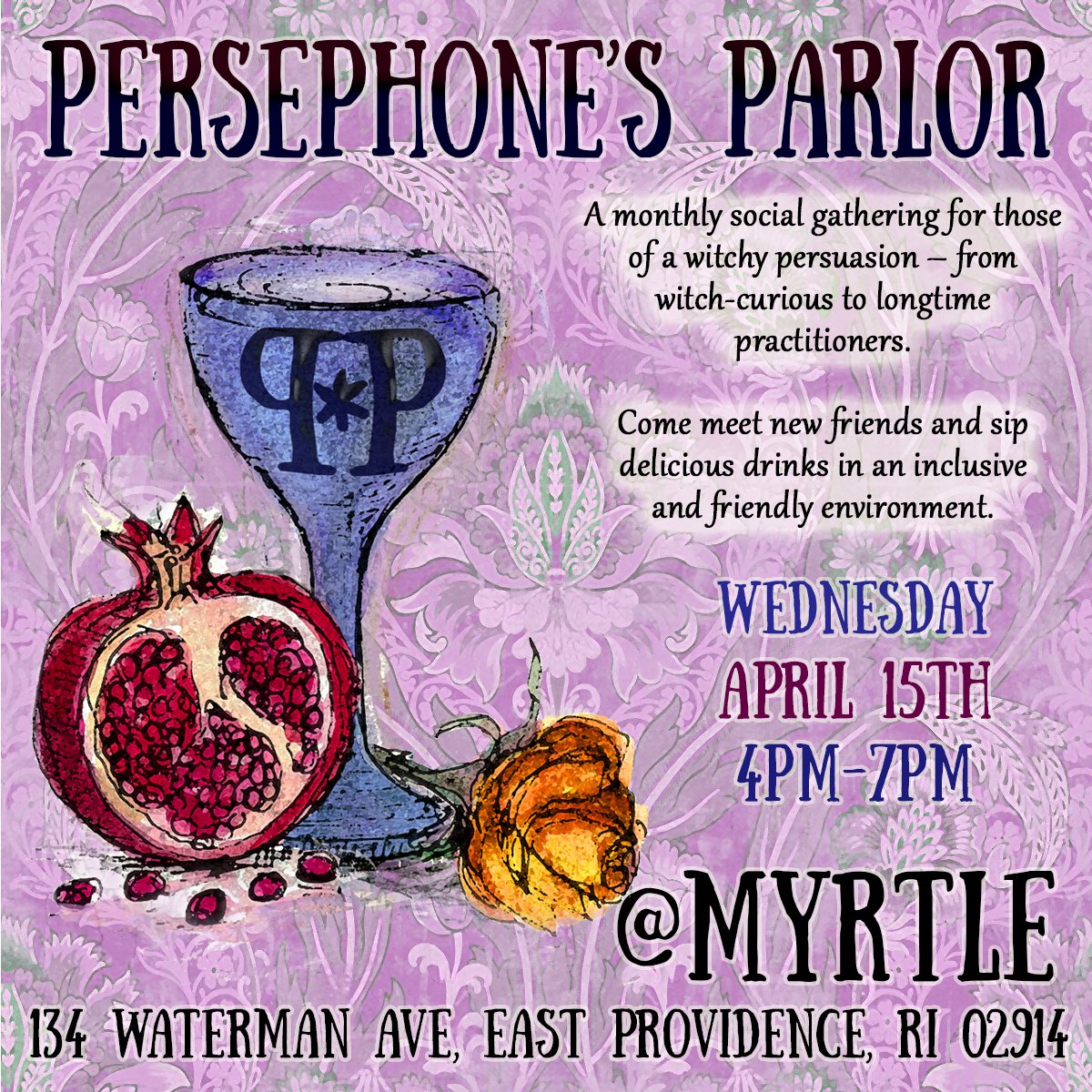 Persephone’s Parlor is a monthly social gathering for those of a witchy persuasion – from witch-curious to longtime practitioners. Come meet new friends and sip delicious drinks in an inclusive and friendly environment.