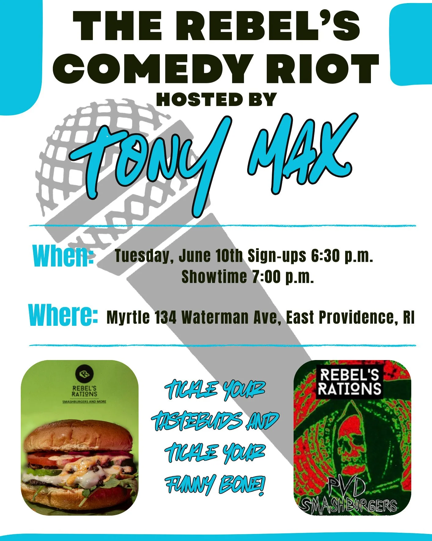 Rebels Comedy Riot open mic hosted by Tony Max! with eats by Rebel’s Rations