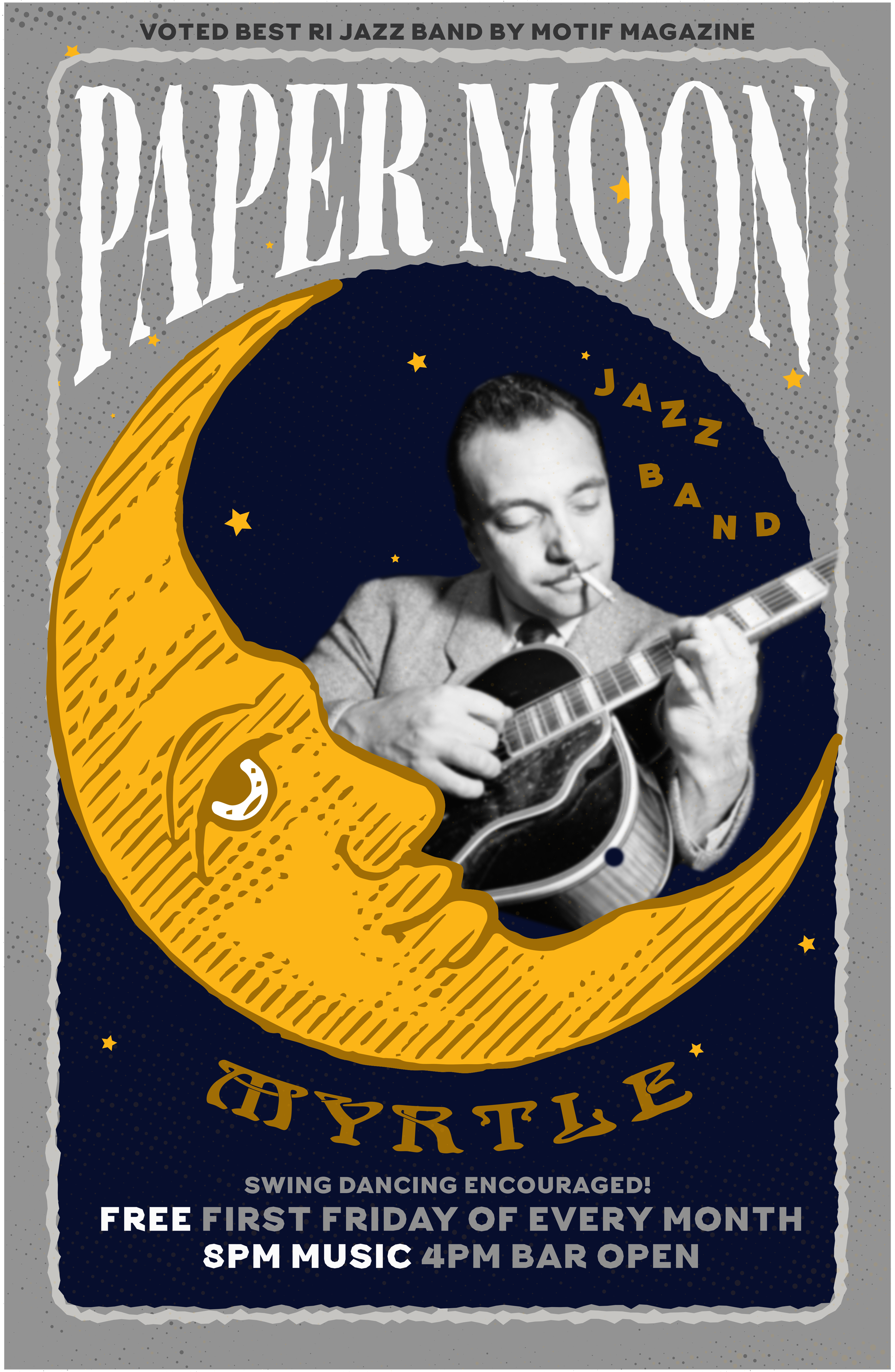 Come dance the night away with the Paper Moon Jazz Band! Featuring music from the 20s, 30s and 40s, Paper Moon is a collective dedicated to the timeless music of Django Reinhardt and the jazz standards of the Swing Era.